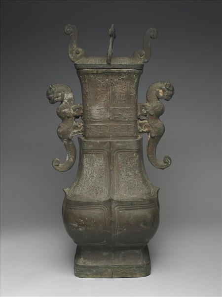 帶蓋圓角垂腹方壺。體呈橢方形,微侈口,長頸、垂腹、方圈足,頸部有一對顧龍形耳。蓋呈盝頂形,上有四個S形鈕。頸部飾仰葉紋及兩條蟠虺紋飾帶,腹部以十字形凸帶分成八個區間,上部四個區間填飾蟠虺紋,下部四個區間素地無紋。兩壺器口內壁鑄有相同銘文五行三十九字:「隹(唯)王廿又六年,聖𧻚之夫人曾姬無卹,(吾)安茲漾陵,蒿間之無匹馬,甬(用)乍(作)宗彝尊壺,後嗣甬(用)之,(職)才(在)王室。」銘文記述楚宣王二十六年(西元前344),楚聲王的夫人曾姬無卹為自己在漾陵蒿間選擇葬地。《史記•楚世家》記載楚聲王即位六年為盜所殺,是曾姬無卹早年喪偶,晚年自知不能與楚聲王合葬,因此製壺為銘記錄獨葬之處,其用意是希望楚王室不要忘了祭祀她。壺銘字體屬於典型的戰國楚系文字,銘文內容具有史料價值。與中銅60為一對,相傳為民國二十一年(1932)出自安徽壽縣朱家集李三孤堆楚幽王墓,後為劉體智先生所藏,終為本院重器。
