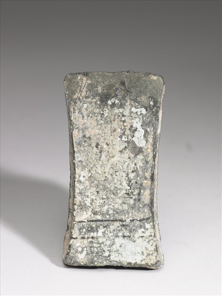 斧,雙面平口刃、中段內束。器身飾弦紋。