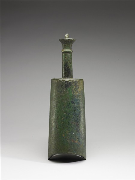 鐸,橢圓體、有衡、甬部,鉦部上無枚、篆之別,橋形口。