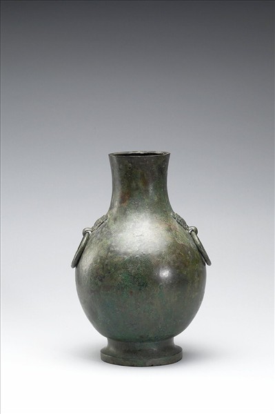 圓口,短頸,鼓腹,圈足。肩上二獸面銜環,器身素面無紋。