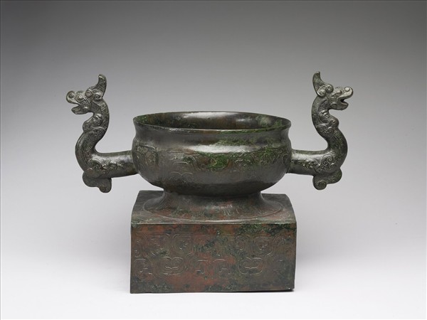 器形復古,兩龍形獸耳外伸,比例上略大,上有重環紋與圓渦紋,腹部、圈足與方座飾波曲紋。腹內有銘文八行三十六字,記田齊桓公(即陳侯午)十四年為先母孝大妃作此祭器之事。銘文記載齊太公和之子桓公田午之重要史料,作器時間在西元前361年,可補文獻之不足。