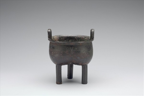 侈口,立耳,分襠,柱足。口沿下飾獸面紋飾帶。器內壁有一亞形銘文。
