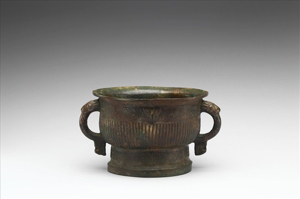 圓簋,侈口、雙耳、縮頸、圓腹、圈足,耳作獸首形附珥。頸飾獸面紋,中央為小獸首,腹飾直棱紋,足飾獸面紋。