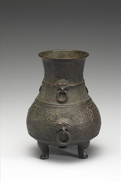 尊,侈口、長頸、斜肩、鼓腹、三足。頸部與腹部有共有六個鋪首銜環。頸部有圓渦紋與幾何形紋,器腹有變形竊曲紋。