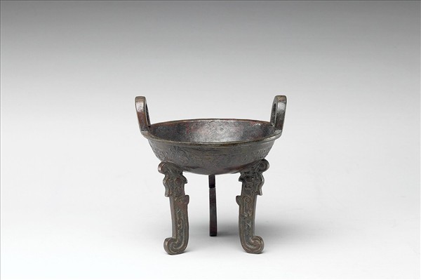 圓鼎,侈口、立耳、扁足。腹飾冏紋、四瓣目紋,足飾夔紋。