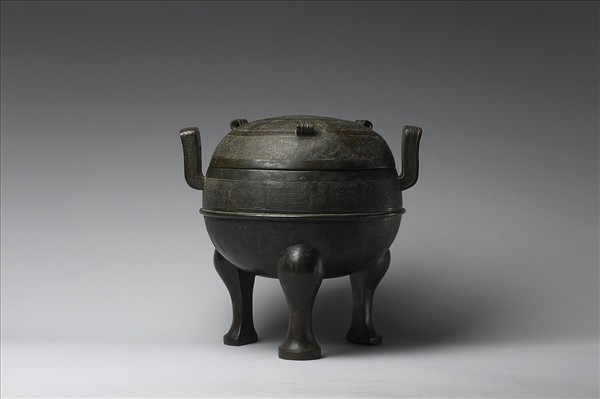 帶蓋圓鼎,子母口,附耳,蹄足,蓋附三環形鈕。腹飾變形環帶紋,間飾繩紋,下飾蟬紋,蓋飾變形環帶紋,耳飾繩紋。蓋及器有銘二行六字。