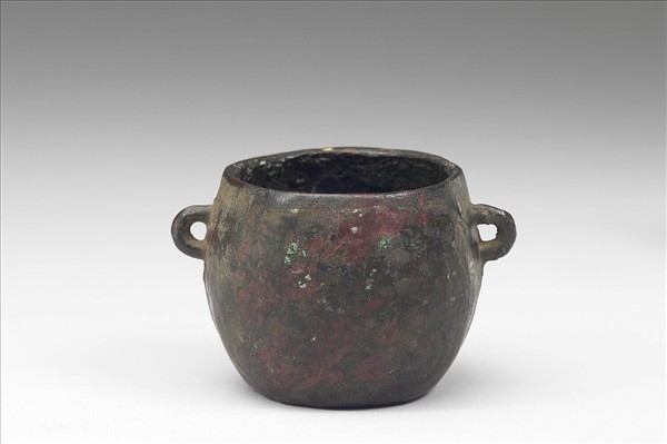 罐,全器呈橢圓形,兩側有環耳,平底。