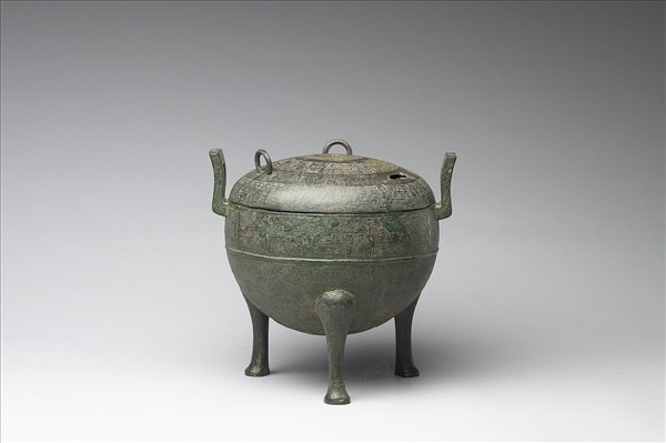 帶蓋圓鼎,子母口、附耳、蹄足,蓋附三環形鈕,一環缺失。腹飾蟠螭紋、弦紋,蓋頂中央一圓渦紋、蟠螭紋、蟠虺紋,耳飾蟠虺紋,鈕飾連珠紋。範線明顯。