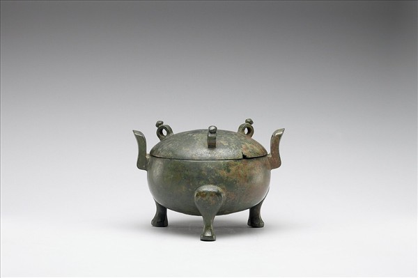 帶蓋圓鼎,蓋帶有三圓鈕,子母口,蹄足。