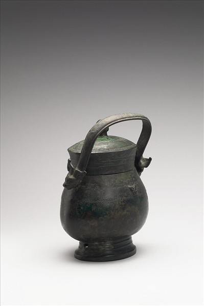 帶鈕蓋,器作子母口,鼓腹略垂,圈足。U形提梁兩端作浮雕獸首,提梁與器頸之間以環耳相接。器頸中央浮雕小獸面,環雲雷紋一周,上下飾連珠紋。器蓋同樣可見相同的紋飾帶。足飾弦紋二道。器內底有銘一字。