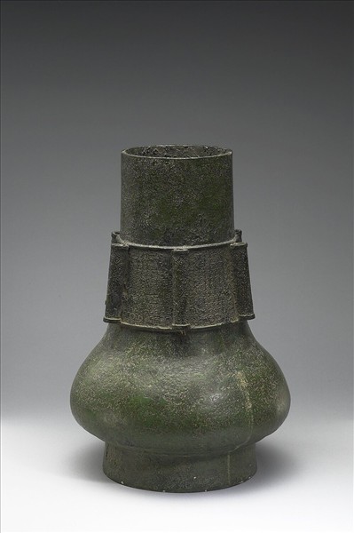 圓壺,直口,六貫耳,長頸,斜肩,垂腹,圈足。貫耳與器頸處雲雷紋為一體,屬同一紋飾帶。
