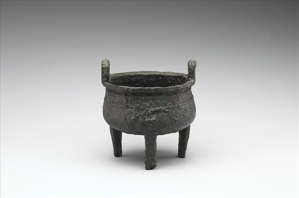 圓鼎,盤口,耳,三柱足。腹飾弦紋。