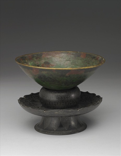 金扣銅茶盞附紫檀嵌金銀絲盞托