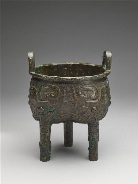 侈口,立耳,腹分三襠,柱足。器腹飾獸面紋,足飾蟬紋。器內壁有銘文四行二十一字:「唯成王大祓在宗周,賞獻侯□貝,用作丁侯尊彝。天黿。」