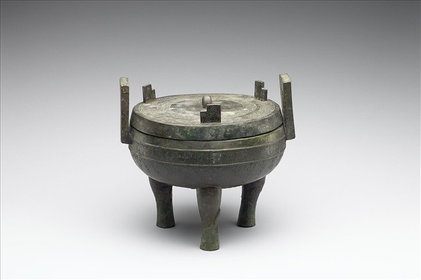 帶蓋圓鼎,子母口,附耳,蹄足,蓋頂中央一半環鈕,另飾三片曲尺狀鈕。腹飾蟠虺紋、蟬紋、弦紋,蓋飾蟠虺紋,耳飾蟠虺紋,曲尺狀鈕則飾具象鳥紋。