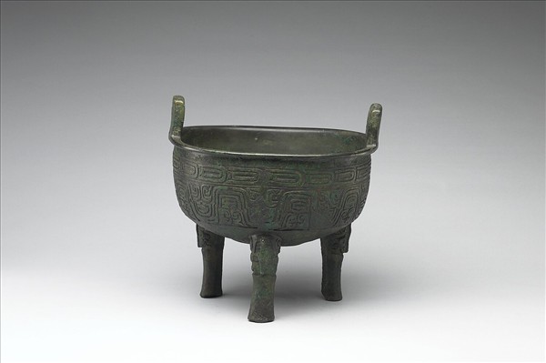 圓鼎,立耳,深腹,獸足。腹飾重環紋、波帶紋。
