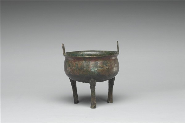 圓鼎,侈口,立耳,縮頸,三足。腹飾圓渦紋、四瓣花紋。