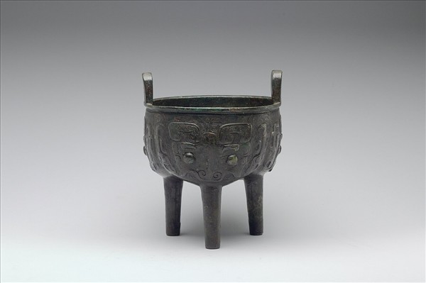 鬲鼎,盤口,立耳,分襠,柱足。腹飾獸面紋,兩側有夔紋,以雷紋為地。器內壁有一亞形銘文。著錄於《西清續鑑.乙編》卷一頁四十二「周亞鼎二」。