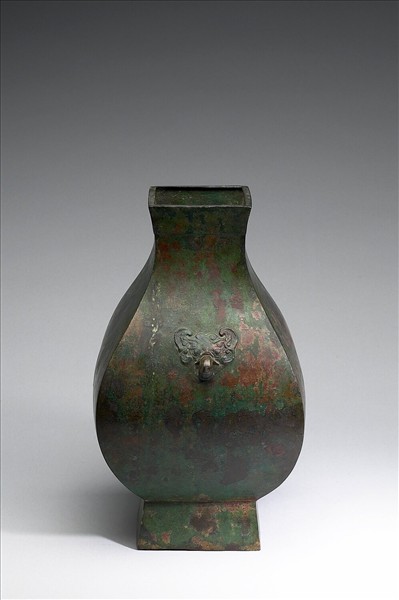 鈁,盤口,短頸,斜肩,鼓腹,圈足。器肩兩側有鋪首銜環,環已失。