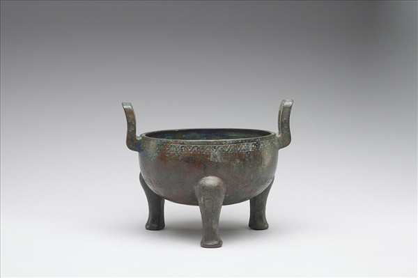 蓋失。平口,附耳外撇,深腹,蹄足。口沿飾交龍紋,耳飾絞索紋。