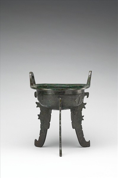 圓鼎,立耳,盤口,扁足。腹飾獸面紋,足飾夔紋。器內有銘。