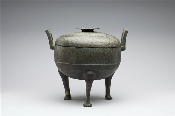 帶蓋圓鼎,子母口,附耳,蹄足,蓋附圓盤狀鈕。腹飾蟠虺紋、間飾弦紋,蓋飾蟠虺紋,耳內外及鈕亦飾蟠虺紋。