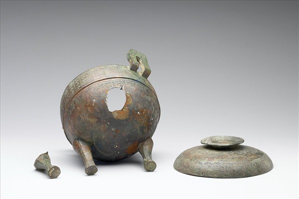 帶蓋圓鼎,子母口,附耳,蹄足,蓋附圓盤狀鈕。腹飾蟠虺紋、間飾弦紋,蓋飾蟠虺紋,鈕亦飾蟠虺紋。腹底範線明顯。