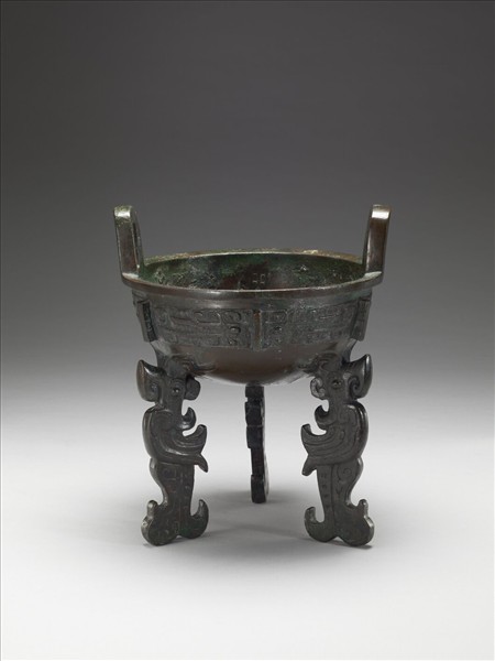 腹飾帶狀獸面紋,扁平三足飾站立鳥紋,曲折開展的鳥冠羽,托附於淺腹器底:鳥喙、鳥羽、冠飾、鳥足鉤爪,皆以立雕形式表出;鳥的眼、眉也精細描繪,極其生動寫實。器壁銘文「析子孫‧父乙」,氏族徽識「析子孫」為宋人所釋,近人改釋「舉」,是商周之際的大族,所鑄銅器群,往往出土於河南安陽、山東費縣、北京房山等墓地,亦見於陝西扶風微史家族窖藏,可知該族於商晚期至西周早期的活動範圍甚廣。