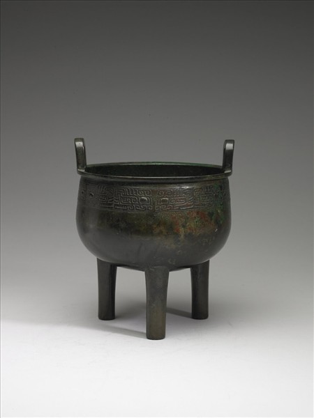 圓鼎,立耳,柱足。口沿下飾有一道獸面紋,內壁有銘文「冉父丁」三字。