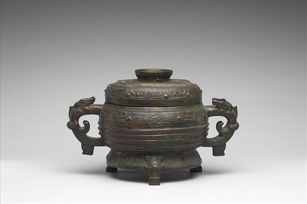 附蓋圓簋,子母口,雙耳,圓腹,圈足,耳作獸首形附珥,圈足下有三足。蓋飾有垂鱗紋、有目竊曲紋,腹飾有目竊曲紋、瓦紋,圈足飾垂鱗紋,下接三足處有小獸首。器或蓋有銘。