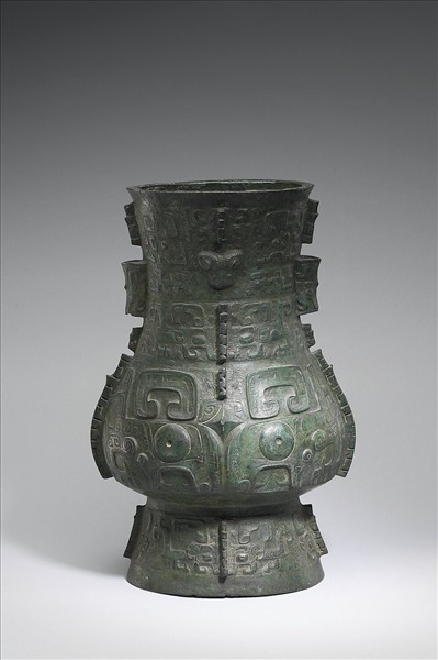 貫耳壺,橢方口微侈,橢方腹,圈足略高,全器四面有棱脊。頸飾獸面紋、二獸首、雲雷紋為地,耳、腹、足皆飾獸面紋、雲雷紋為地。口內有銘四字。