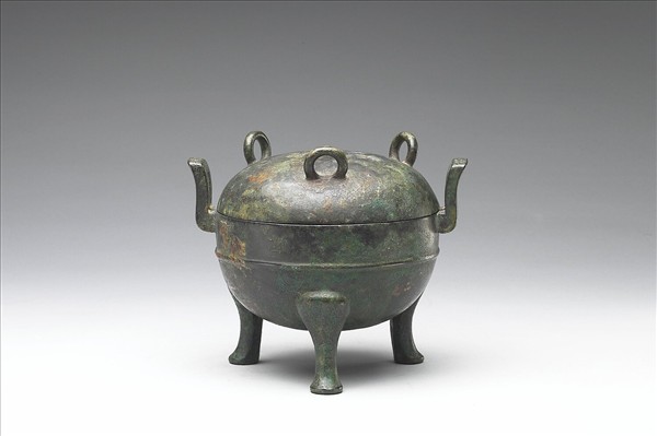 附蓋圓鼎,子母口,附耳,深腹,蹄足,器、蓋呈球形,蓋呈半球形,附環鈕。腹飾弦紋一道。
