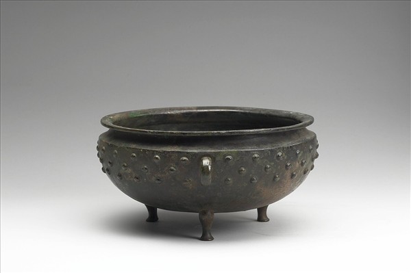 敦,盤口,折肩,環耳,蹄足。腹飾乳丁紋。