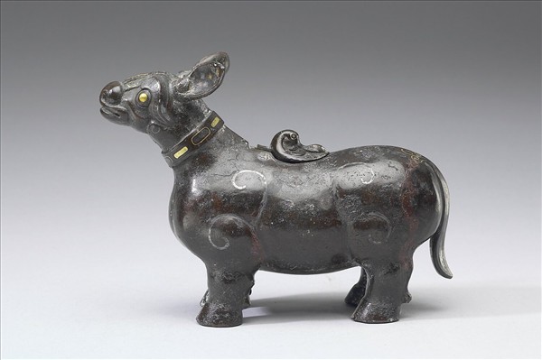 全器以動物為造型,雙耳高挺,昂首直立,四足著地,尾下垂,背部有蓋。器表以金銀鑲嵌,獸首局部飾幾何紋,頸飾項圈,腹飾卷雲紋,尾飾幾何紋。
