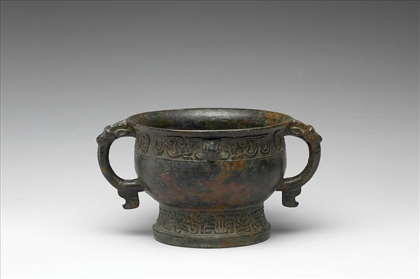 圓簋,侈口,雙耳,圓腹,圈足,耳作獸首形附珥。頸飾夔紋,中央為小獸首,足飾獸首紋。