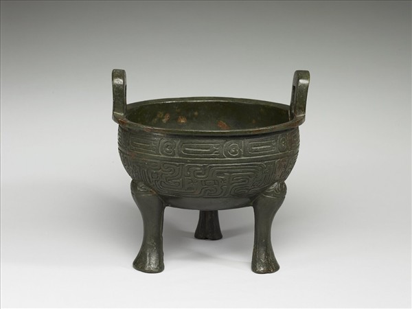 器身橫切面圓,三足,器面範線在足面中線之延展線上,上至口沿,下至足底,底面範線作三角形,腹花紋二層,近口重環紋,下方大片為寬條形夔紋與竊曲紋組合。