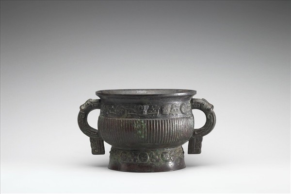 圓簋,侈口,雙耳,縮頸,圓腹,圈足,耳作獸首形附珥。頸飾夔紋、冏紋,中央為小獸首,腹飾直棱紋,足飾夔紋、冏紋。器內有銘。