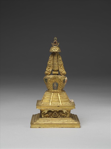 塔座呈方形四階,正面有天梯,代表佛至三十三天為母說法後,在舍衛城(Shravasti)降臨。
