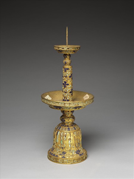 銅鍍金嵌松石及青金石燭台(五供)