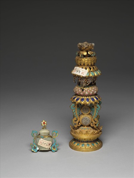 銅鍍金嵌玉及填料八寶(寶瓶)