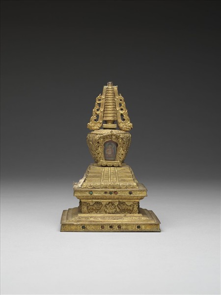 塔座呈方形四階,正面有天梯,代表佛至三十三天為母說法後,在舍衛城(Shravasti)降臨。