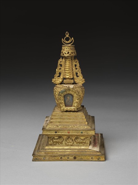 銅鍍金嵌料佛塔 多門塔