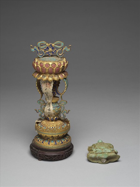 銅鍍金嵌料石八寶(寶傘)