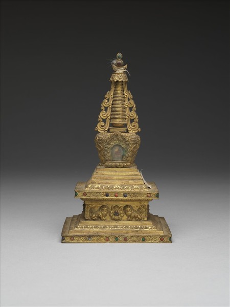 銅鍍金嵌料佛塔 菩提塔