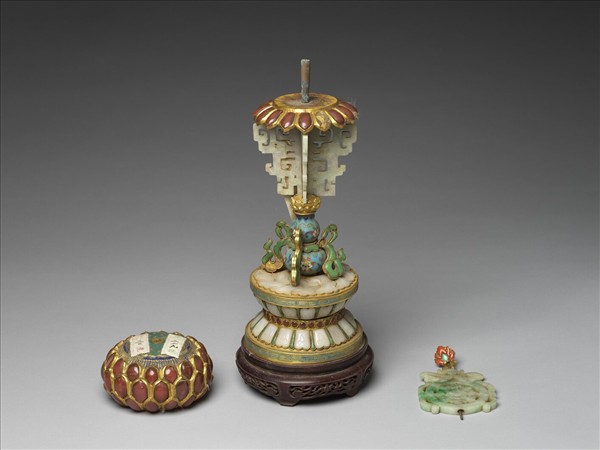 銅鍍金嵌玉及料石八寶(法輪)