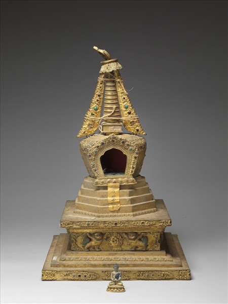 塔座呈八角形三階,代表提婆達多(Devadatta)在王舍城(Rajgir)挑撥的僧眾,佛陀命二聖前往化度,使重歸和好。