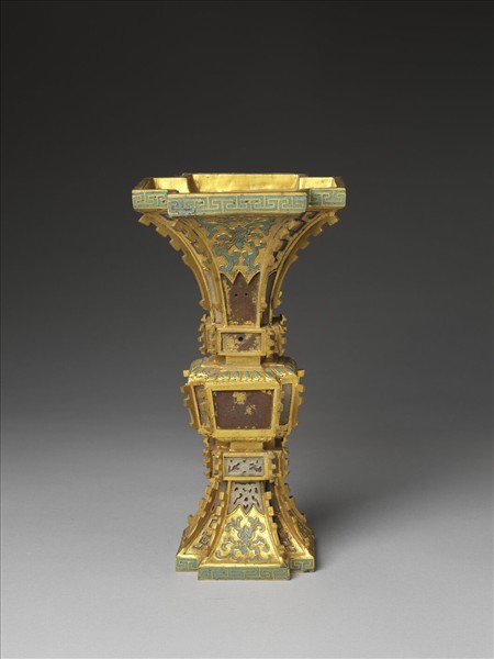 銅鍍金嵌玉及填琺瑯觚(五供)
