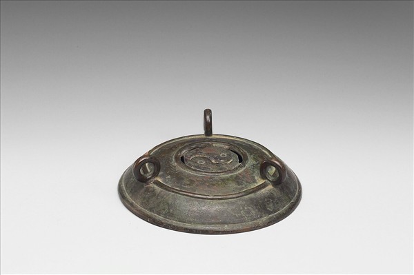 圓蓋,蓋面有三環耳捉手,蓋中央飾太極,外環弦紋。