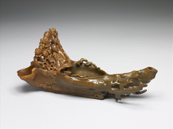 雕犀角人物乘槎