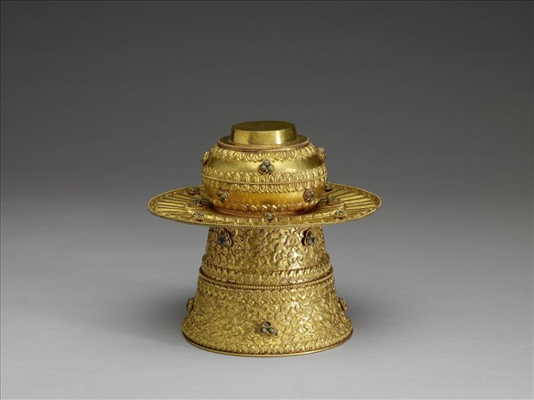 銅鎏金嵌寶石花卉紋高足座